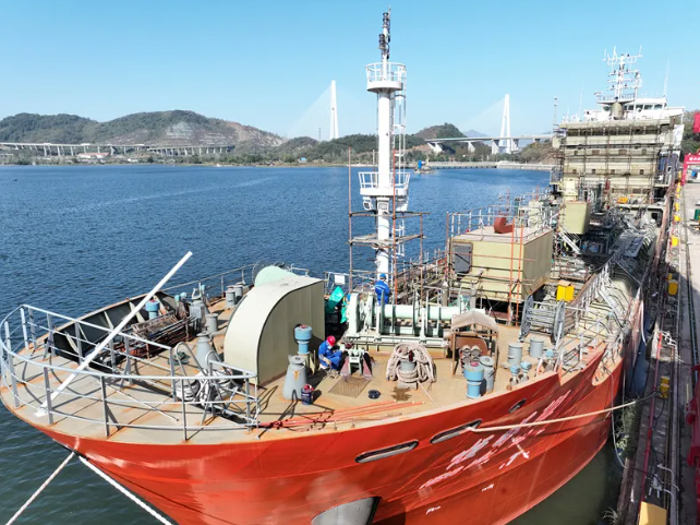 由新江洲船舶重工有限責任公司制造的恒暉102不銹鋼化學品船自吉水以來,施工方科學調度、合理安排施工,不斷加快整船舾裝進度,計劃今年年底達到全船交付狀態。