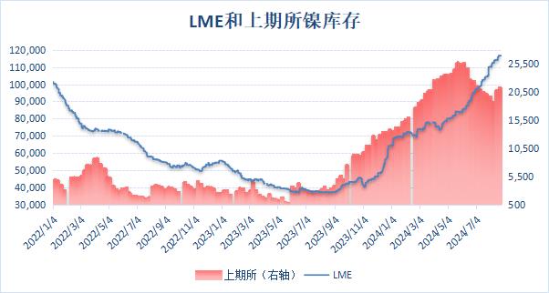 上期所公布的數據顯示,8月23日當周,滬鎳庫存繼續累積,周度庫存增加2.49%至21,321噸,增至逾一個月新高。