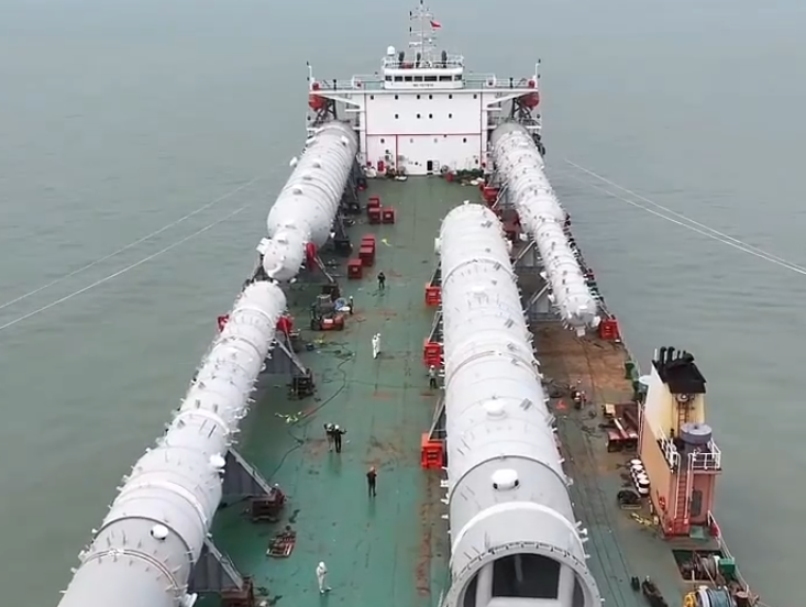 8月6日,由張家港富瑞重型裝備有限公司生產(chǎn)制造的不銹鋼塔器正在進行裝運,將發(fā)往沙特***,用于當?shù)厥突ろ椖俊=衲晟习肽辏瑥埣腋蹖步ā耙粠б宦贰眹疫M出口726.5億元,同比增長5.9%;其中出口同比增長16.6%。