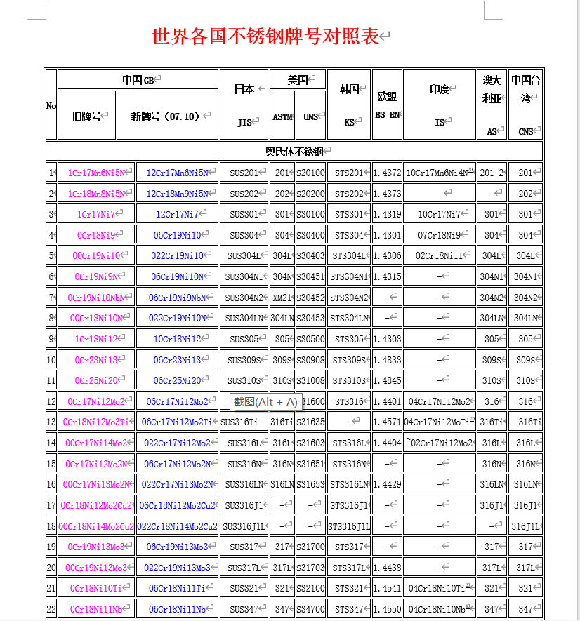 駿達鋼管為您提供世界各國不銹鋼牌號對照表